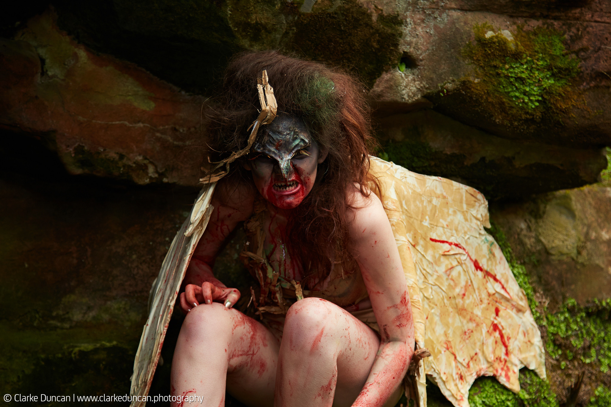 Cave Fay was the end of year creation by my sister-in-law Stephanie for her Make-up course and she convinced my other sister-in-law Amanda to be her make-up model/victim LOL after her friend decided at the very last minute that she didn’t want to do it. I got roped in to do the photography and since Stephanie had been my model for photo shoots in the past, I was more than happy to help but Stephanie is pretty demanding when it comes to what she wanted, 1st off we scouted the location and I took a test shot to make sure it would work. I had to take several photos using a flash gun to light up different parts of the cave and overlay them and after taking the photograph on the day I added the special effect of the mist. As ever Amanda was a star during the very, very cold shoot and wasn’t even put off when a bunch of boys who gathered above the rocks behind us to watch 😉